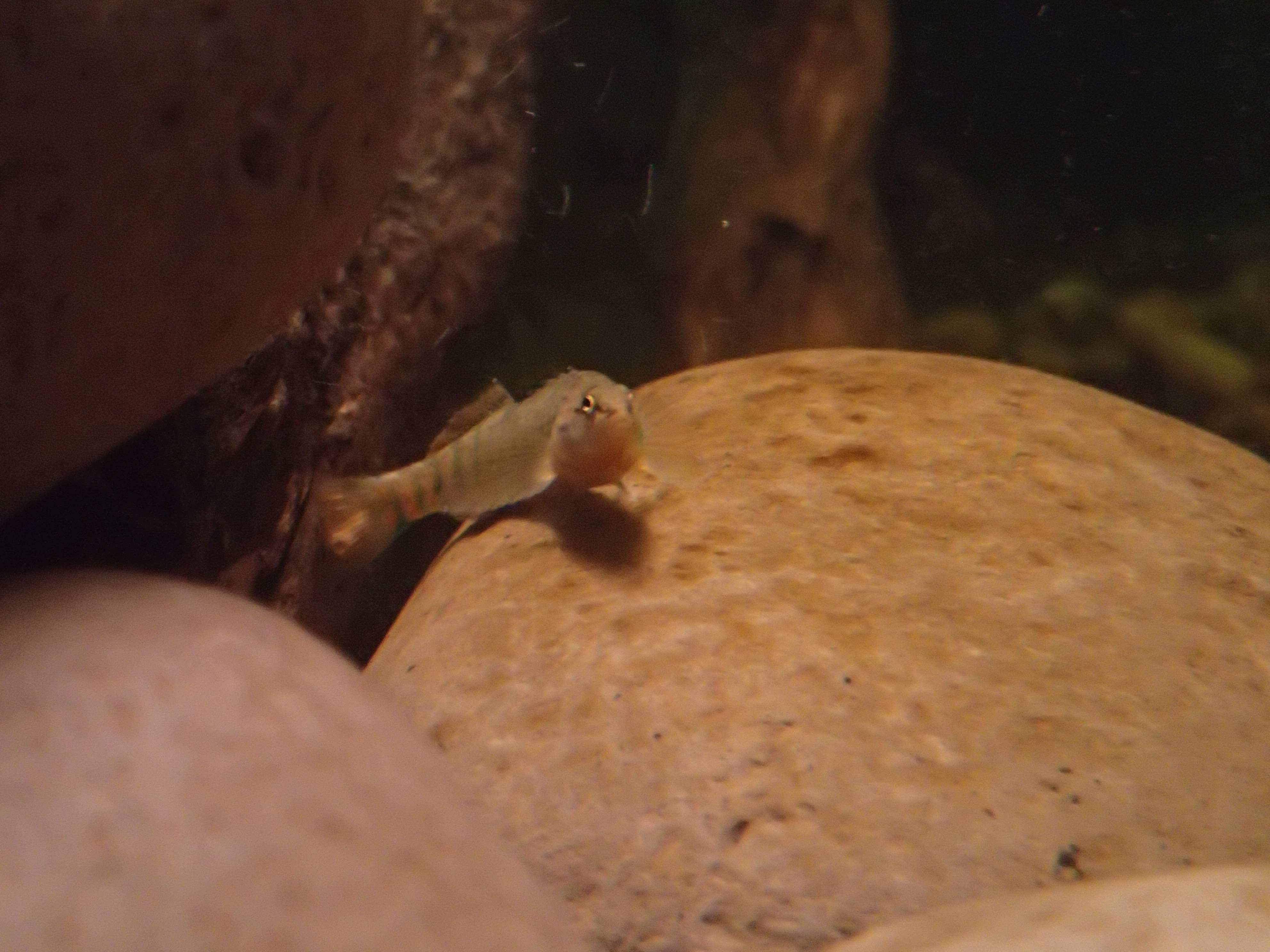 Notice the mouth is on the lower half of the head. This is a pretty good indication that this fish lives on the bottom. Darters do in fact live on the bottom of creeks and streams where they move between and under rocks looking for insect larvae to eat.